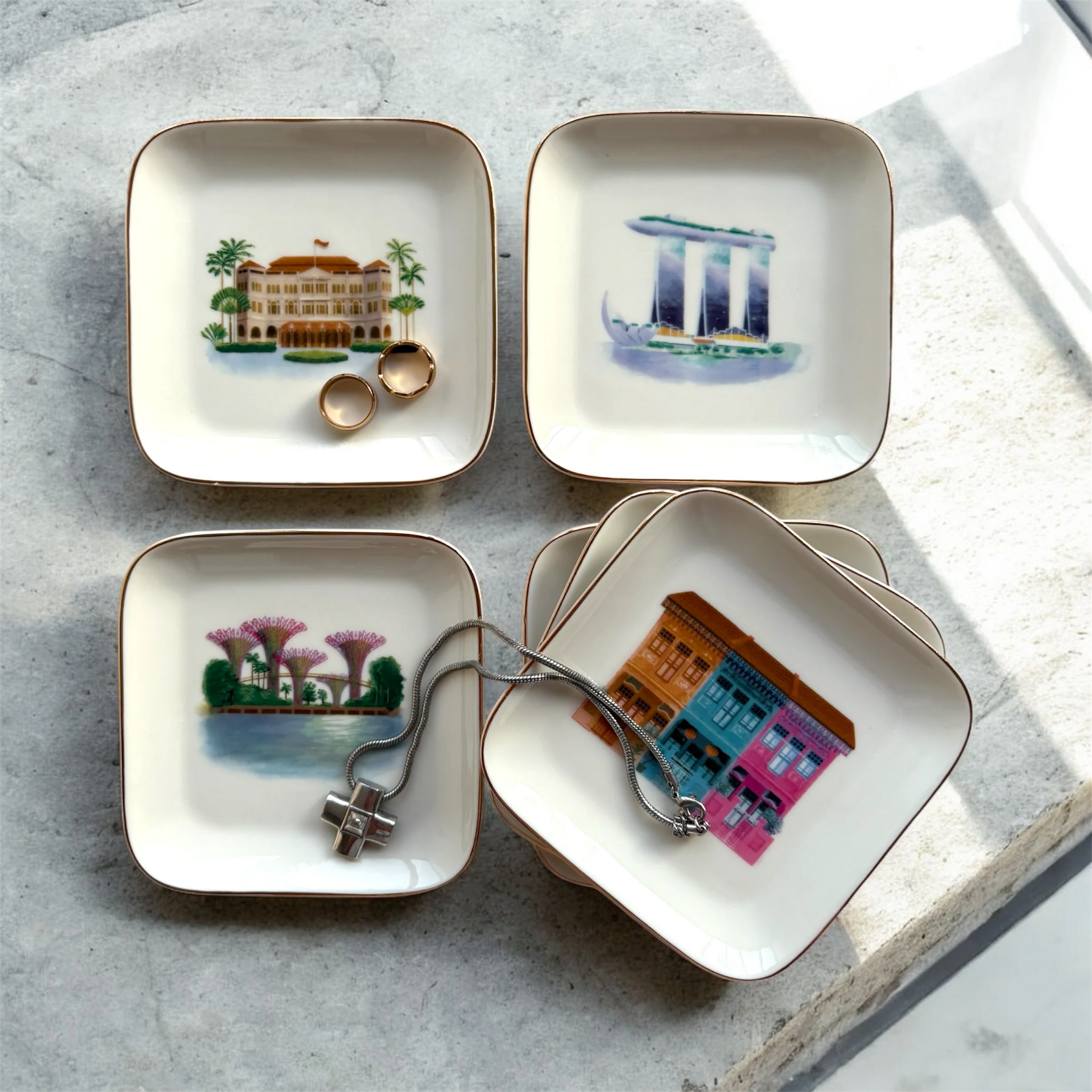 Celebrate the architecture of Singapore with this stunning multi-use dish. Crafted from high-fired porcelain and finished with a luxurious gold gilded rim and accents, it features elegant illustrations of the city's iconic landmarks.